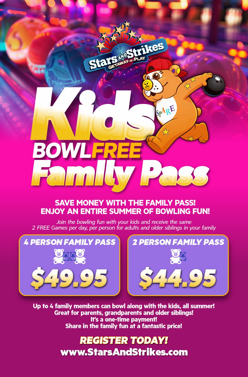 And there’s fun for you, too! Purchase one of the Family Plan options and you can get in on the action with two free games for up to 4 adults. We want you and your family to spend the summer being active and having fun together. Kids Bowl Free makes it super-easy!