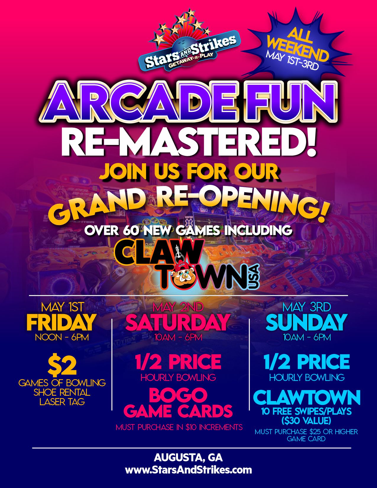 🚨 Be there for the grand re-opening excitement, exclusive deals, and the BEST arcade experience in Augusta!