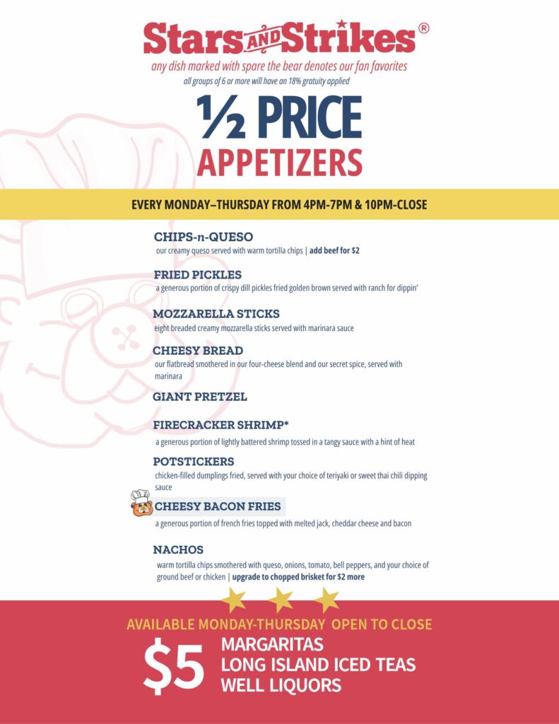 🍔 ½ Price Appetizers + Drink Specials (per local law)