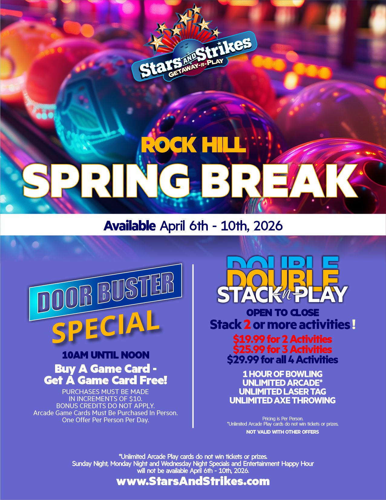 🎳 SPRING BREAK AT STARS AND STRIKES – Rock Hill, SC! 🎳