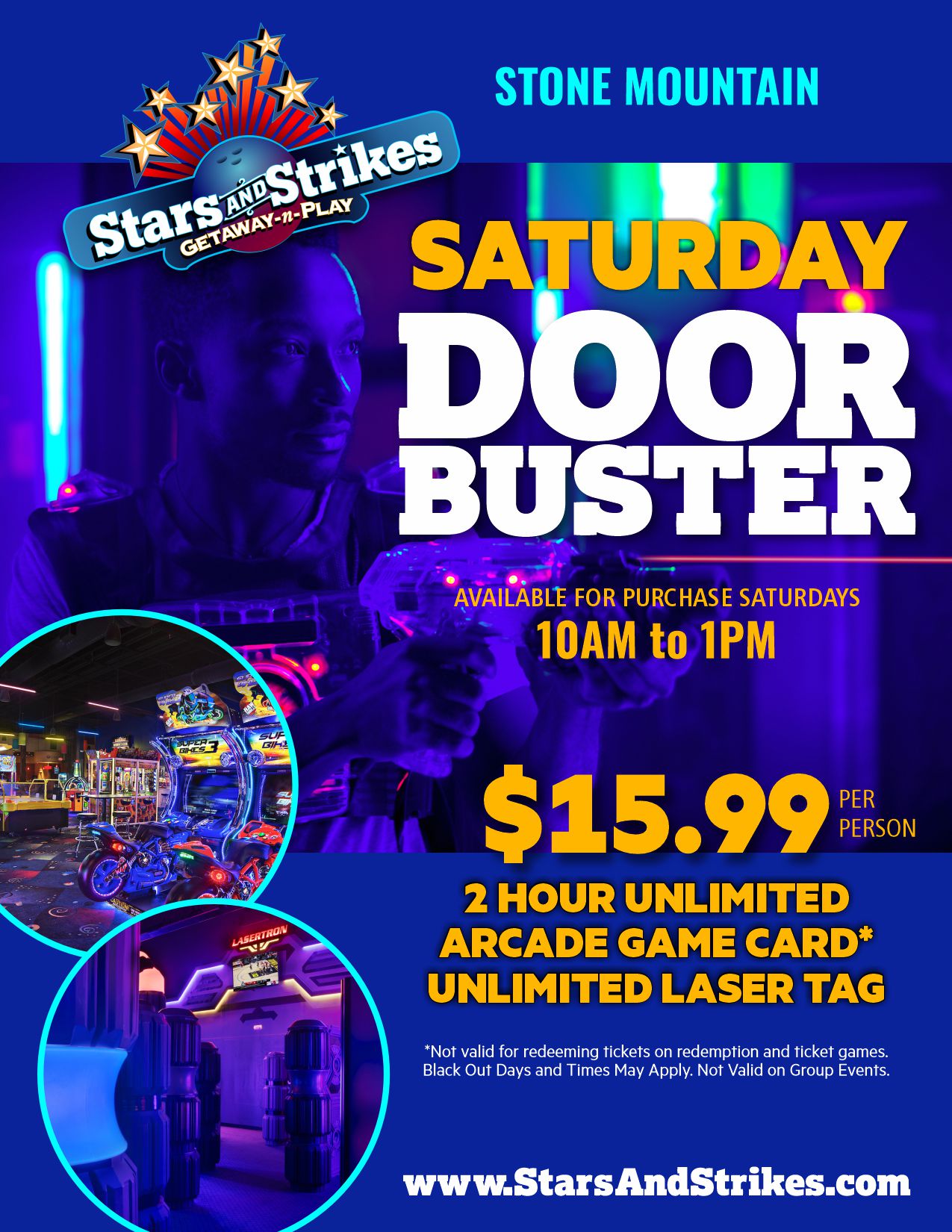 Saturdays From 10am to 1pm, Enjoy Our $15.99 Per Person Saturday DOOR BUSTER Special!